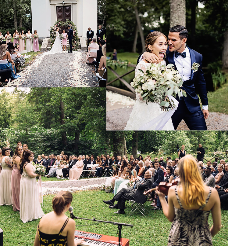 ”Vigseln började med att Agnes Scherwin och Elenoor Roovers spelade låten Photograph på fiol och piano medan barnen, mina tärnor och till sist jag gick fram till vigselplatsen. Jag hade lyssnat och gråtit till deras version av låten i flera månader, men det var ingenting i jämförelse med känslan jag fick när jag gick där mot Aleks. Åh, det var så vackert. Verkligen helt perfekt.”
